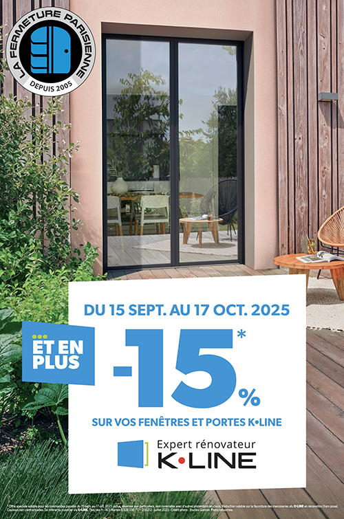 Du 15 sept. au 17 oct. 2025, bénéficiez d'une remise de -15% sur vos menuiseries bois, alu, PVC et mixtes de notre gamme : portes d'entrée, fenêtres à la française, baies coulissantes et à galandage. Venez rencontrer notre technicien/commercial à notre show-room d'Elancourt.