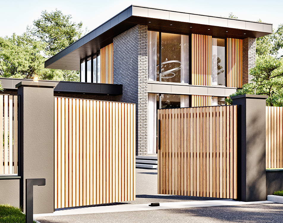 Fabriqué à partir de tasseaux en Red Cedar de 38 x 38 mm et doté d'un cadre en aluminium avec tôle d'occultation, ce nouveau portail s'adapte à vos préférences. La variation d'espacement entre les tasseaux e panneau d'occultation vous permet de personnaliser à la fois l'intimité et le design de votre entrée. Le cèdre rouge, matériau robuste, résiste conditions météorologiques et reste exempt de déformations liées à chaleur, faisant de ce bois un choix de référence pour l'aménagement extérieur.